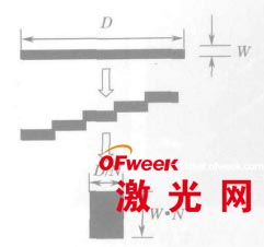 1.1、光束對(duì)稱化 由于半導(dǎo)體激光陣列的輸出光束在快慢軸上的光束參數(shù)乘積極其不對(duì)稱,這使得半導(dǎo)體激光陣列的輸出光束很難被聚焦成小而圓的光斑從而將其藕合進(jìn)光纖系統(tǒng)。其中光束參數(shù)乘積(BPP)定義為激光光束束腰半徑和發(fā)散角的乘積,是衡量光束質(zhì)量好壞的重要指標(biāo),它反映了光束的聚焦能力。對(duì)于半導(dǎo)體激光一維陣列,其慢軸上的BPP值是快軸BPP值的100-1000倍。為了 提高半導(dǎo)體激光器的功率,往往將多個(gè)半導(dǎo)體一維陣列(bar)疊加,形成一個(gè)二維陣列,即半導(dǎo)體激光堆棧。但是堆棧的慢、快軸上的光束參數(shù)乘積仍然相差約兒十倍。 若想使半導(dǎo)體激光陣列的光束在快慢軸上的光束參數(shù)乘積均勻化,必須采取光束整形。將半導(dǎo)體激光陣列的輸出光束進(jìn)行分割、重排,通過減小慢軸方向、增大快軸方向的光束參數(shù)乘積的方法達(dá)到快慢軸光束參數(shù)乘積均勻化的目的。 光束整形原理如圖3所示。半導(dǎo)體激光陣列光束的尺寸為慢軸方向D.快軸方向W.將光束沿慢軸方向分割N.段,重排后光束的尺寸為慢軸方向D/N,,快軸方向W·N,使光束的光參數(shù)積BPP近似相等。